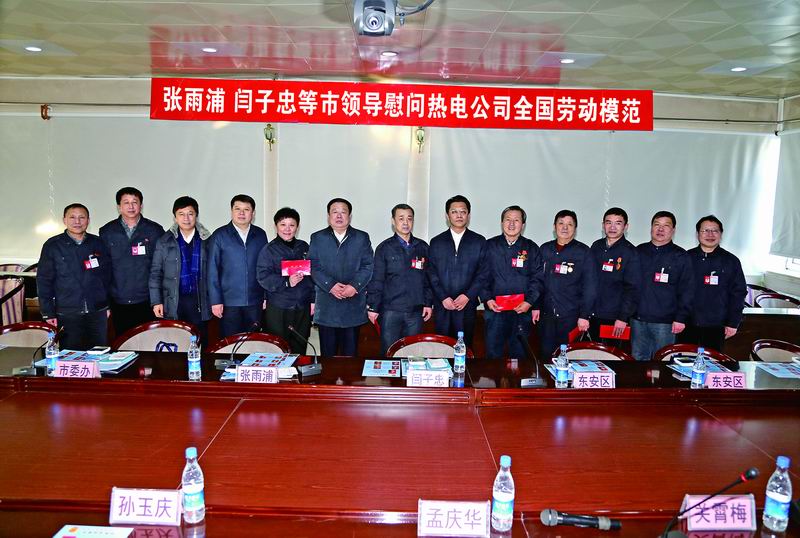 1月22日,市委書記、市人大常委會(huì)主任張雨浦,副市長(zhǎng)、市公安局局長(zhǎng)閆子忠代表市委市政府到我公司慰問全國(guó)勞動(dòng)模范,為勞模們送來慰問金,并借此轉(zhuǎn)達(dá)了對(duì)全市各級(jí)勞動(dòng)模范及其家屬的新春?jiǎn)柡?。市總工?huì)、市委辦、東安區(qū)等領(lǐng)導(dǎo)陪同慰問。