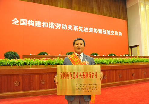 “全國構(gòu)建和諧勞動關(guān)系先進(jìn)表彰暨經(jīng)驗交流會”于2011年8月15日至16日在北京隆重舉行。中共中央政治局常委、中央書記處書記、國家副主席習(xí)近平出席會議并講話。這次會議,是由全國總工會、人力資源和社會保障部、全國工商聯(lián)、中國企業(yè)聯(lián)合會、中央宣傳部聯(lián)合召開的。會議表彰了全國模范勞動關(guān)系和諧企業(yè)和工業(yè)園區(qū),我公司獲得“全國模范勞動關(guān)系和諧企業(yè)”榮譽。